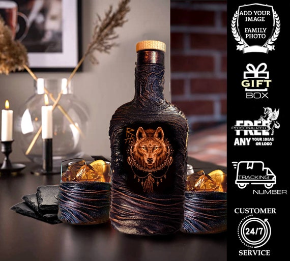 Wolf Personalized Whiskey Decanter Set With Gift Box Custom Etsy